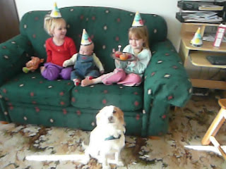 During the girls nap, in the afternoon, I whipped up a batch of banana cupcakes so that as soon as they got up the party could start!! We whipped some hats on and took the customary pictures.